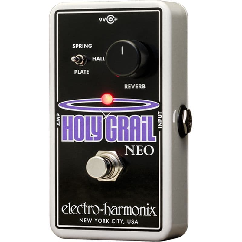 Your quest for an ultra pedalboard-friendly stompbox that includes plate reverb is fulfilled with the Holy Grail Neo. Divine Hall and classic Spring reverbs complete the heavenly mix and give you three of the most sought after reverb styles. The three-position switch lets you choose and the Reverb knob acts as a wet/dry control.