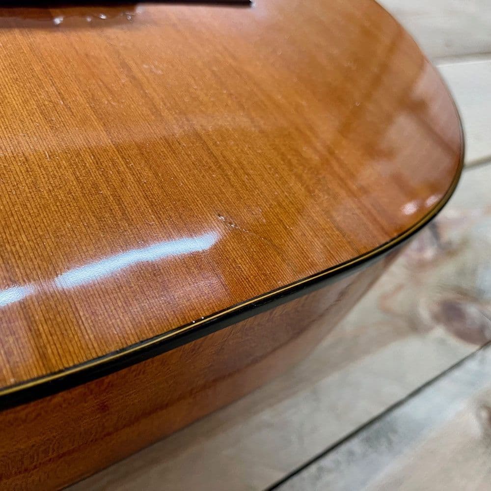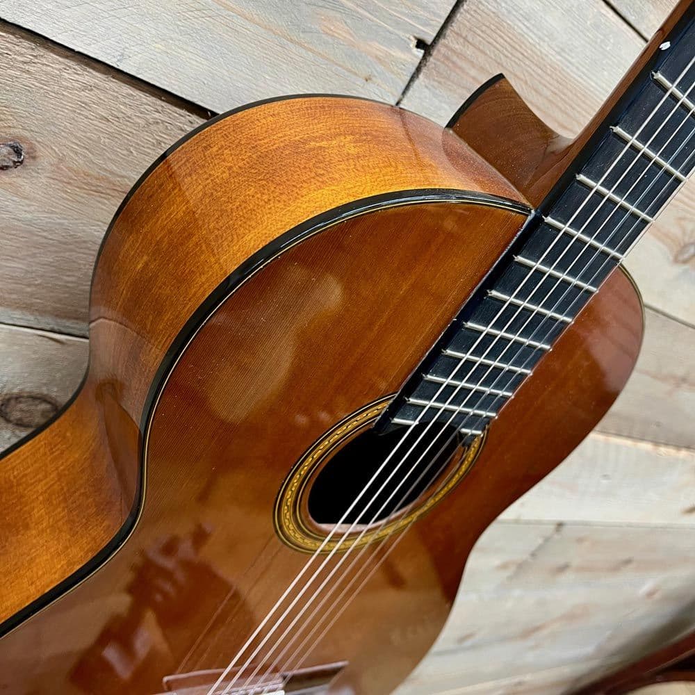 Here we have a Model A made by Petersen guitars in 1979. The model A has a maple back and sides. It is a relatively small bodied classical and is a very sweet and delicate sounding guitar.